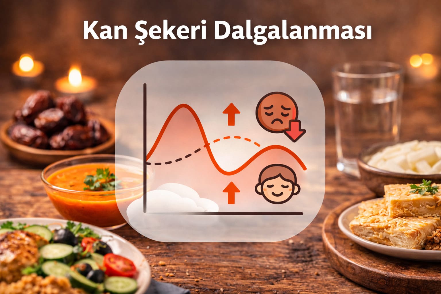Oruç süreci boyunca hissedilen uzun süreli açlık, bireyin kan şekerinin düşmesine neden olabilir. İftar sofrasında hızlı ve yüksek miktarda karbonhidrat tüketimi ise kan şekerinin ani şekilde yükselmesine ve bunu takiben tekrar hızlıca düşmesine yol açar. Bu dalgalanmalar; baş dönmesi, terleme, çarpıntı, halsizlik ve ani tatlı krizleri şeklinde kendini gösterebilir. Özellikle diyabet hastalarında bu durum daha risklidir ve dikkatli takip gerektirir. Kan şekerini dengede tutmak için kompleks karbonhidratlar, protein ve sağlıklı yağlar birlikte tüketilmeli, porsiyon kontrolü yapılmalı ve su alımı ihmal edilmemelidir. Düzenli ve dengeli beslenme, bu dalgalanmaları azaltarak enerji seviyesini korumaya yardımcı olur.